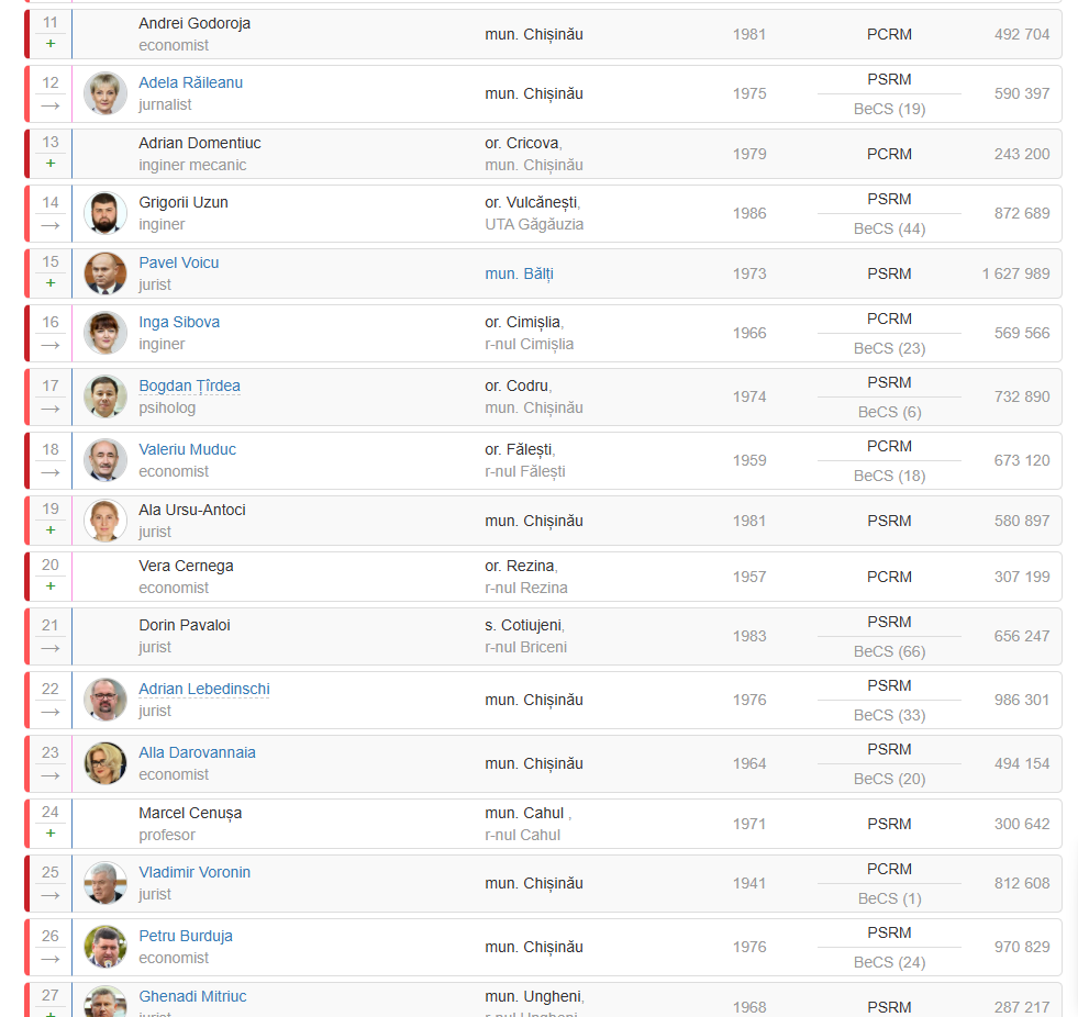 - Igor Dodon – economist, mun. Chișinău (PSRM)