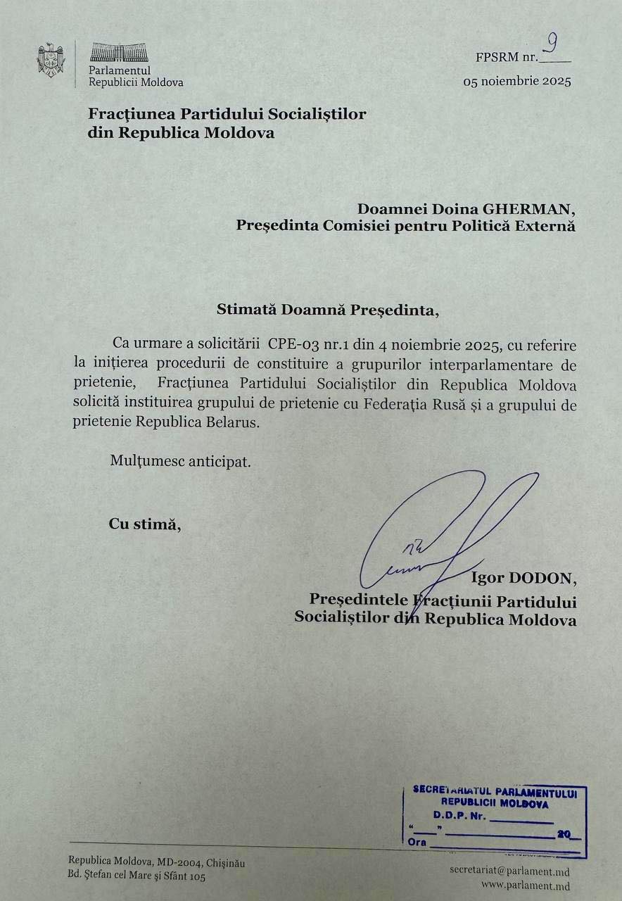 De asemenea, Igor Dodon a precizat că a solicitat reprezentanților PAS din Parlament să înființeze un astfel de grup de prietenie. Cererea oficială a fost făcută de Fracțiunea parlamentară a Socialiștilor.