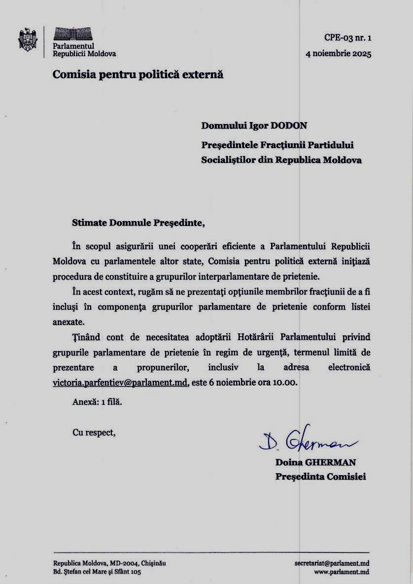 „În lista grupurilor parlamentare de prietenie cu țările din străinătate propusă de majoritatea parlamentară PAS, lipsesc așa state ca Feredația Rusă și Belorusia cu care Republica Moldova are relații diplomatice de decenii iar relații de prietenie de secole.