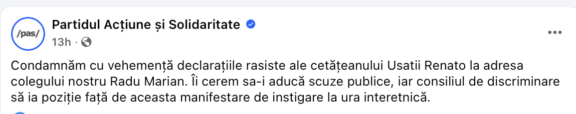 Ulterior, Radu Marian a calificat afirmațiile precum că ar fi schimbat ziarele electorale reprezintă un fals. Afirmațiile lui Renato Usatîi au fost condamnate de PAS, reprezentanții formațiunii considerându-le discriminatorii.