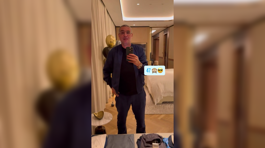 În înregistrare, acesta glumește pe seama vârstei sale, spunând: „Așa, am ieșit din casă, aveam doar 46 de ani… și acum am împlinit 47.” Politicianul s-a arătat vizibil surprins de atenția primită, admirând baloanele și chiar perechea de ciupici personalizați cu inițialele „R.U.”. „Asta e echipă! Trebuie să dorm cu capul numai pe pernă?”, a întrebat el râzând, în timp ce arăta spre pern cu inițialele.